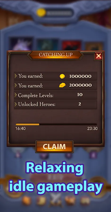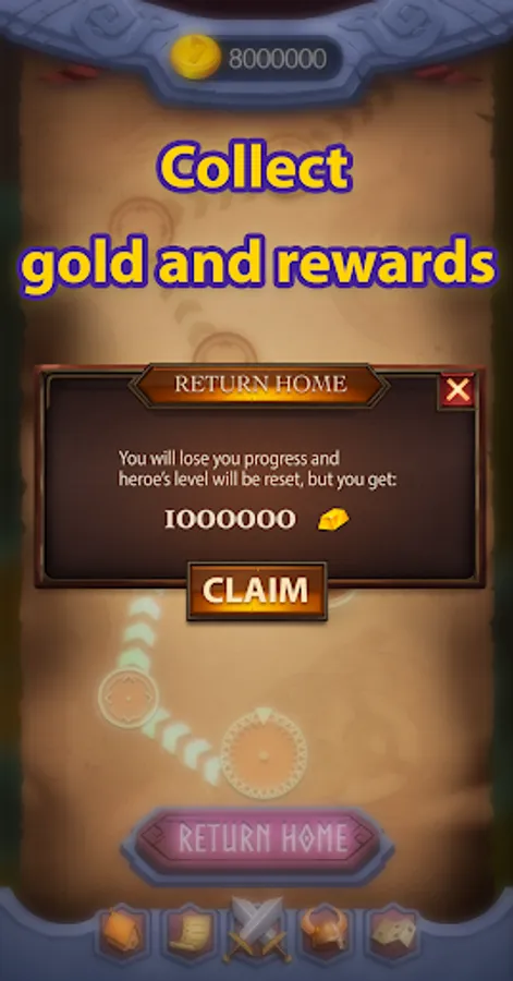 Your party will be generating gold even if you're offline! Just come back from time to time to improve your village and to send your heroes on new adventures.