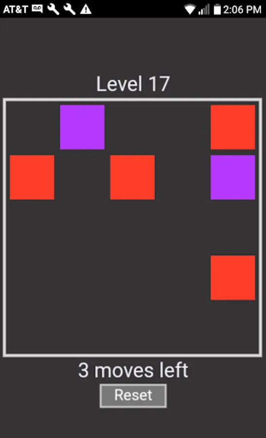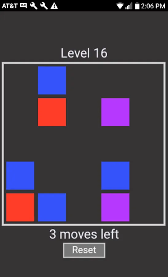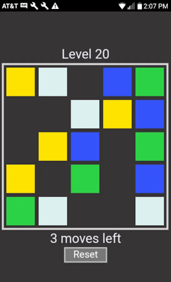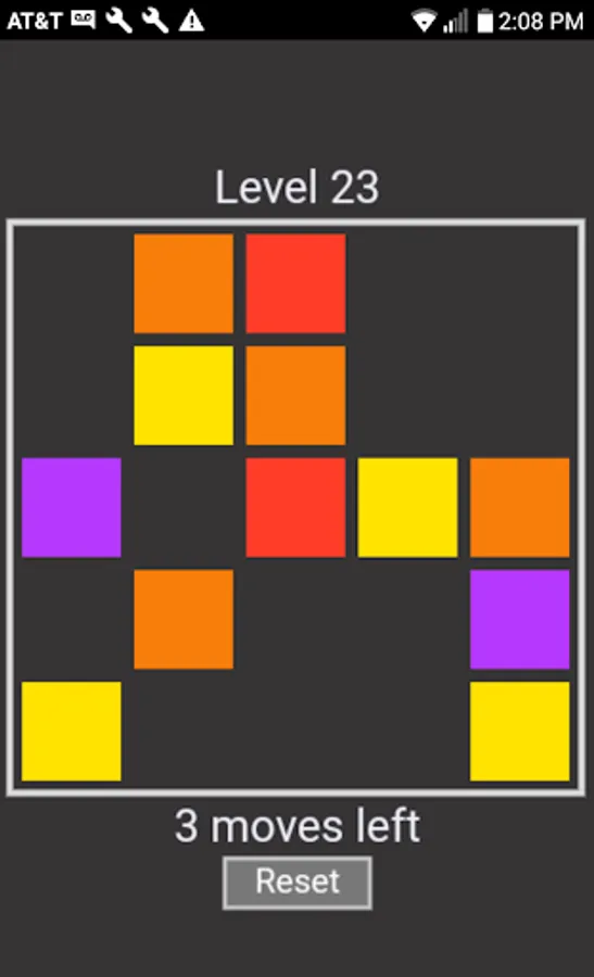 Complete each level by removing all the blocks by swiping left, right, up or down. Adjacent blocks of the same color are removed from the board. A successful solution must remove all the blocks within a limited number of moves. The board is a 5x5 grid and the blocks can have 7 possible colors. The game contains 60 levels of gradually increasing difficulty.