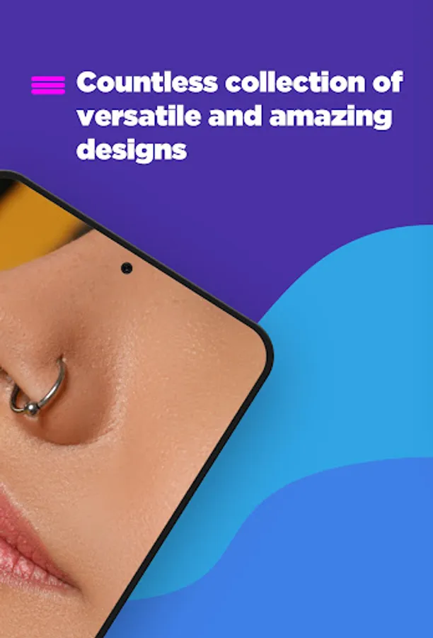 Download the app today to view 4K nose ring designs, for a high-quality browsing experience. The app provides a realistic nose ring design browsing experience. Additionally, check out 3D nose ring designs to try out your favourite nose ring design in real time. It is advised that you try out your desired trendy nose ring designs virtually before actually getting a piercing, as they are not reversible.