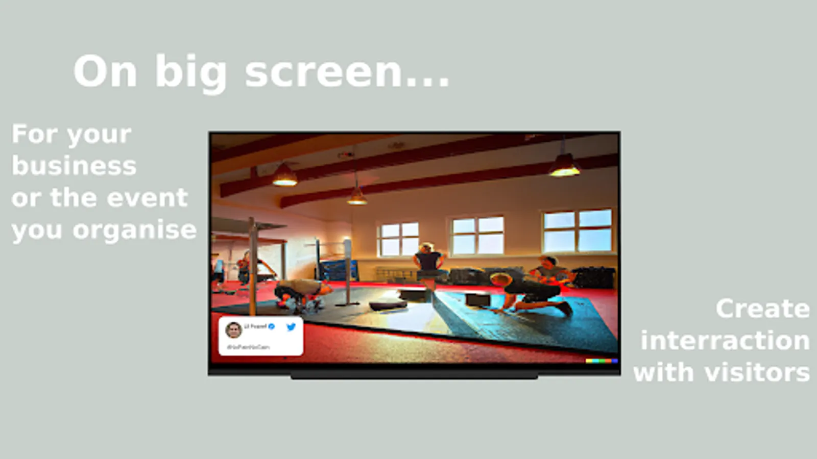 This is the perfect solution for public places. You manage a shop, a public event or you broadcast a sporting event? Enrich it with a tweet stream overlay.