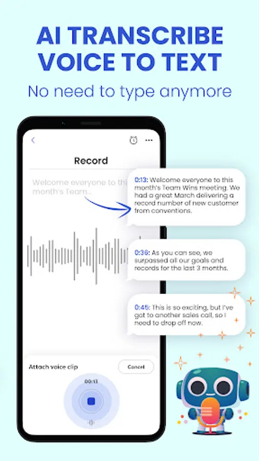 Ai voice note can transcribe text to audio in real-time, or import audio & video files to get transcribe audio. You can easily take AI voice notes, and meeting notes automatically to save time.