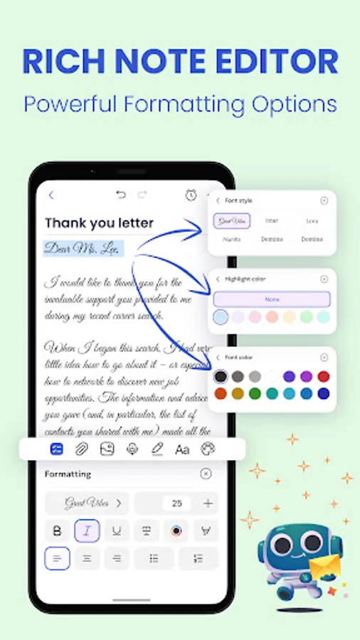 - Rich note editor to customize your notebook