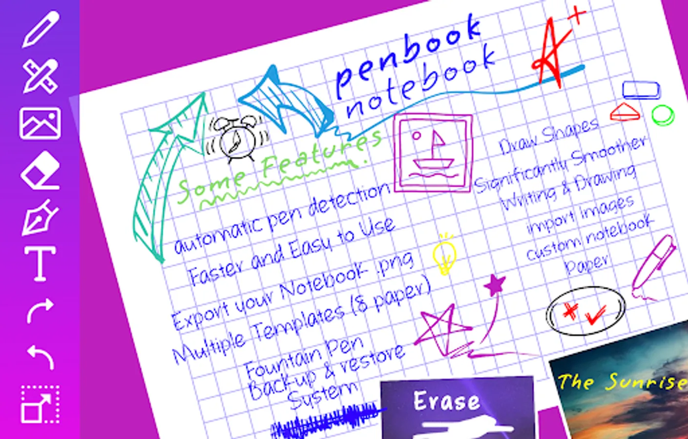 - Effortless Note-taking: Easily take notes using a digital pen and paper that emulate real writing tools.