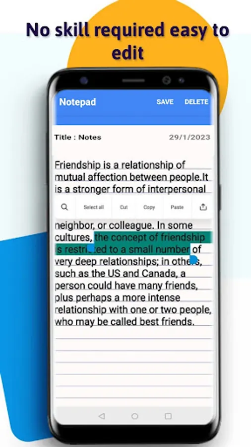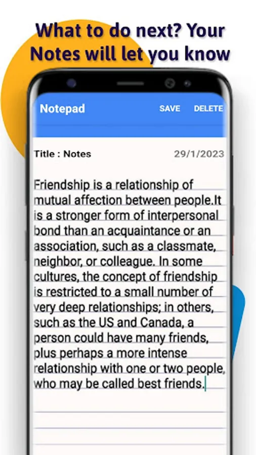 With this Notepad - Simple Notes & Lists , you don't need an active internet connection. You don't need a friend to help you with notes but you just need access to this notepad app!