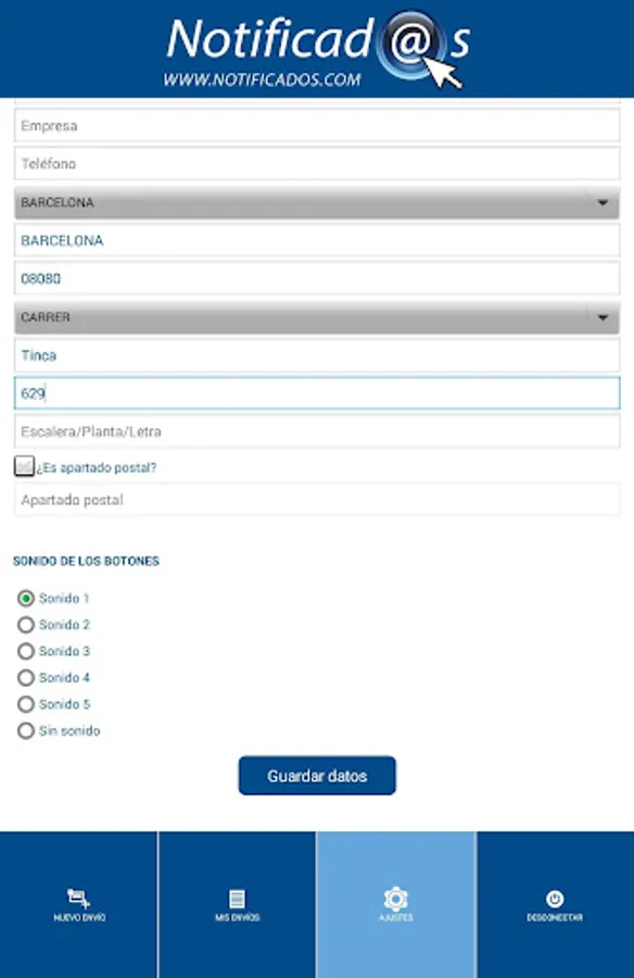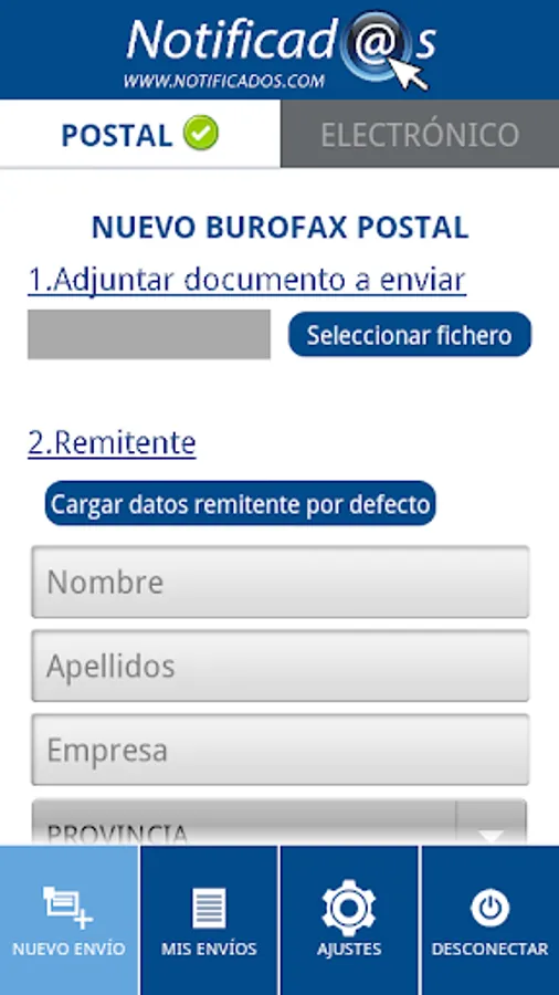 Burofax reported is the free application that offers www.notificados.com for sending a mail or e burofax the recipient you want to simply and easily from your android device. Without any fee (high, monthly, etc.), you only pay for the shipment you make. With Reportable Burofax, any service can be monitored from the first to the last step, having a complete feedback throughout the process. Hire your shipments Acknowledgement and / or testimony Notarial Certification Content (fully and legally unassailable proof). As Trusted Third Party, Notificad @ s custody completely free of charge and for a minimum period of 10 years all tests, both electronic and physical.