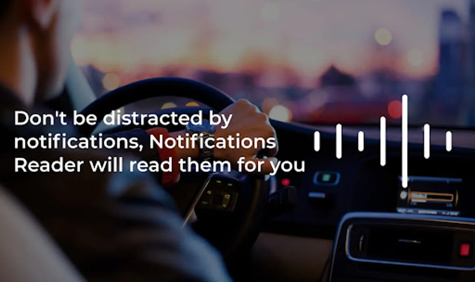 The app will help you while driving, you don't have to look at your phone to read notifications, the notifications reader announces it for you.