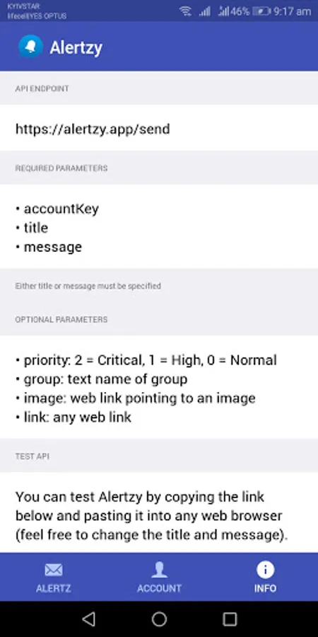 Alertzy utilizes a straightforward REST API to send push notifications, making integration effortless for your application or any other system. You don't need to be a programmer to set up basic alerts. With the HTTP library available in your application's language, construct a POST request to the following URL: https://alertzy.app/send.