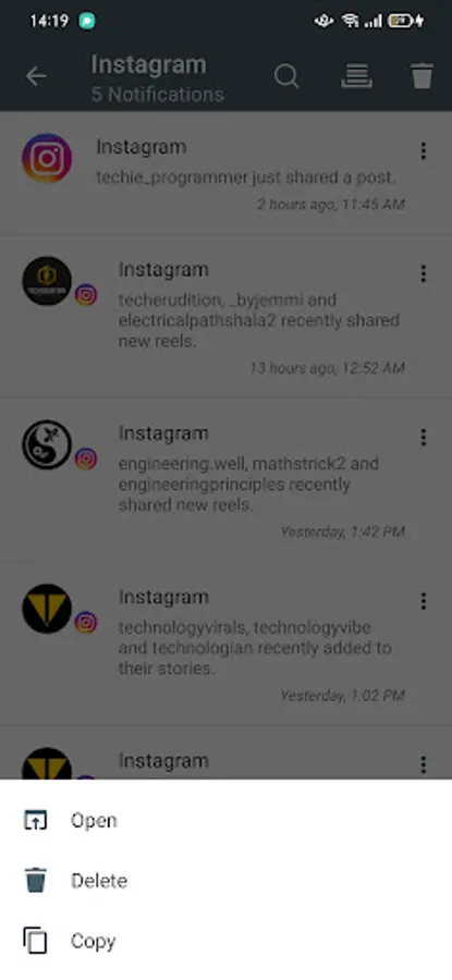 Records all recent notifications that your device receives, it doesn’t matter if you dismiss notifications by error, you could open the app and notification will be there for you to check.