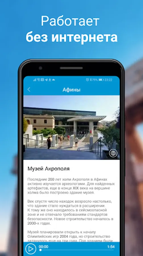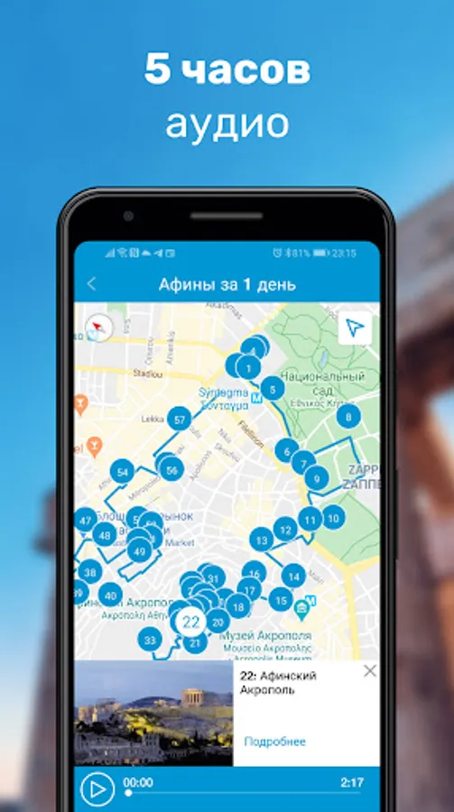 The "Athens Audio Guide and Map" app is a convenient guide and mobile guide to the capital of Greece, which will help you see and learn all the most important things in the city on your own and much more economically than with live guides.