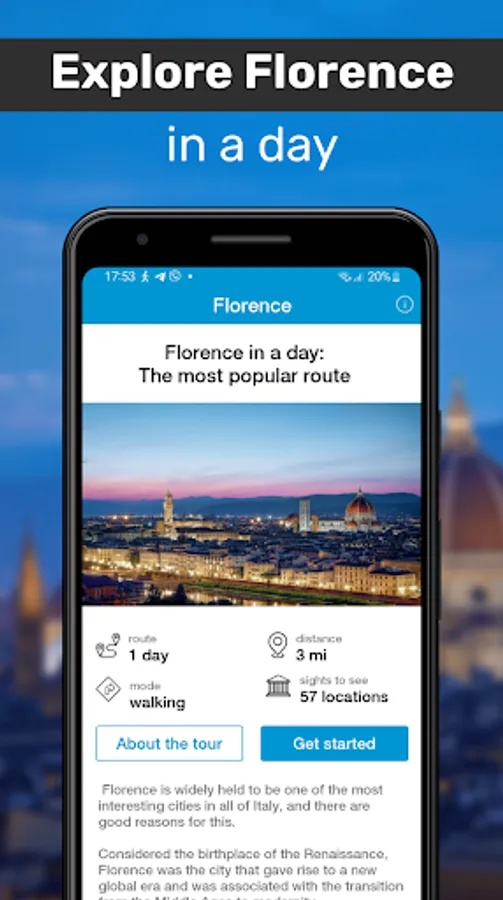 Easily turn your smartphone into a comprehensive Florence City Guide and embark on an amazing walking tour, covering the most important sites and all the hidden gems of the historical centre which are often missed by the majority of tourists.