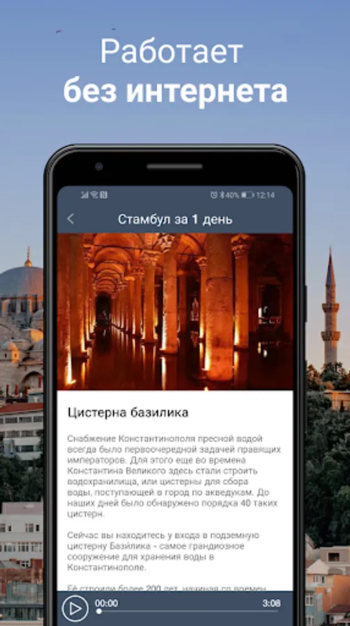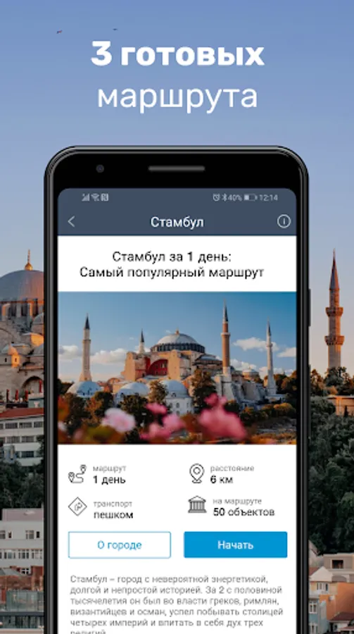The application "Istanbul Travel Guide and Offline Map" is a convenient audio guide to the most interesting districts of the city, which will allow you to easily and excitingly cover all the most important things, significantly saving on the services of live guides.