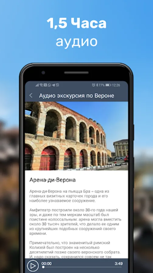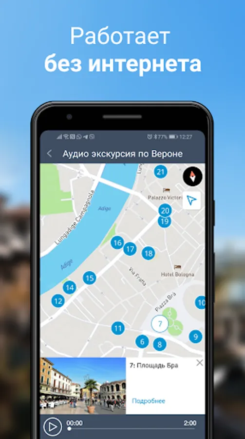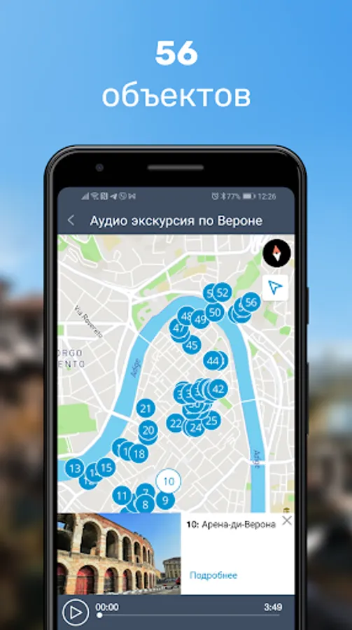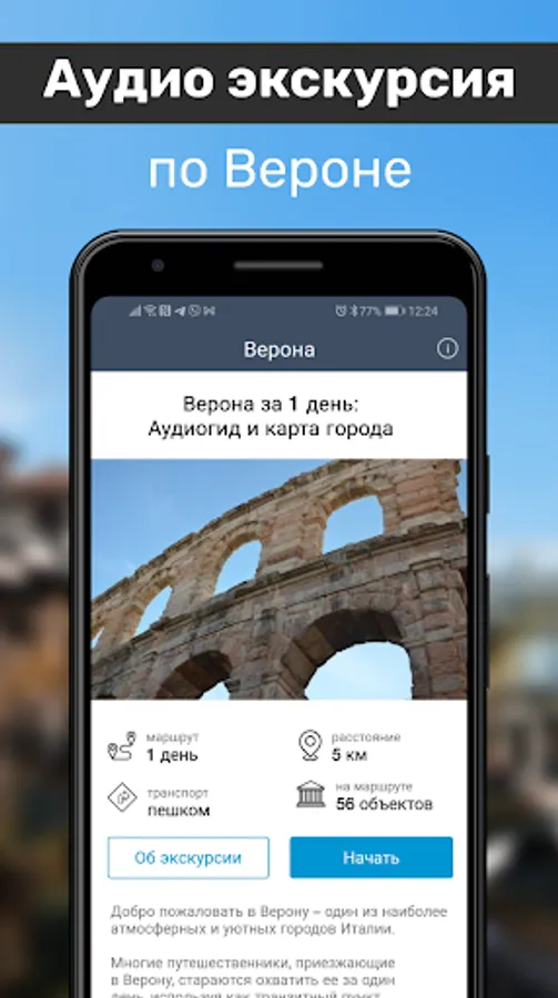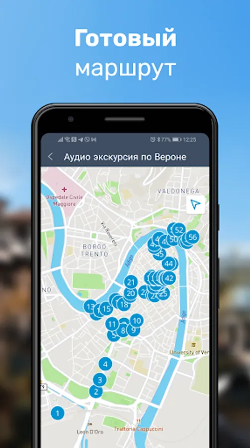 Аудиогид «Верона: Путеводитель и Карта» – это готовая аудио экскурсия по историческому центру Вероны, которая поможет Вам за несколько часов посмотреть все самое главное в городе, существенно сэкономив на услугах гидов.