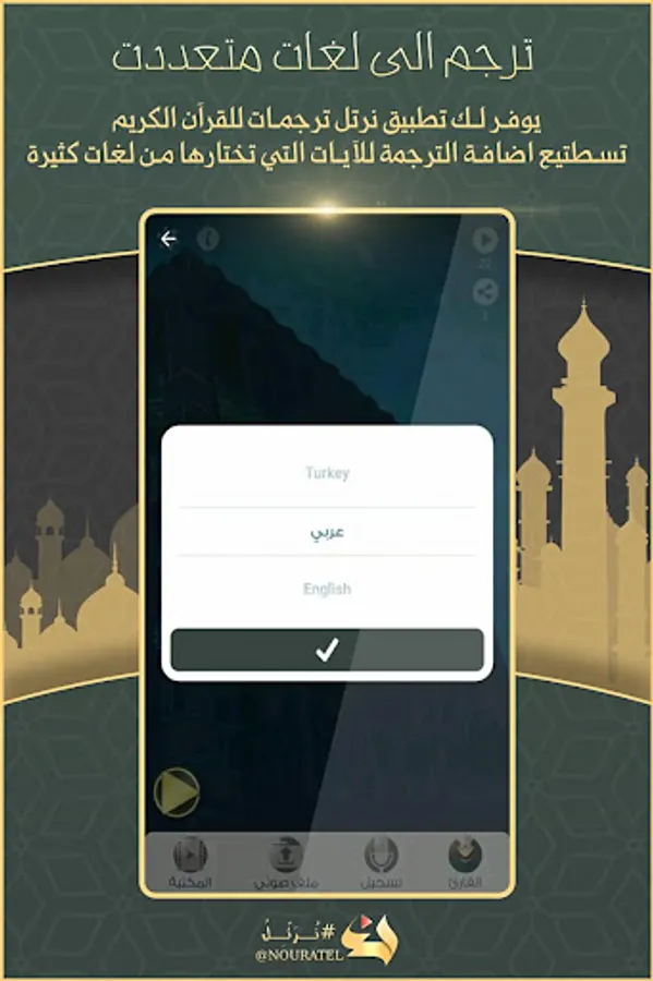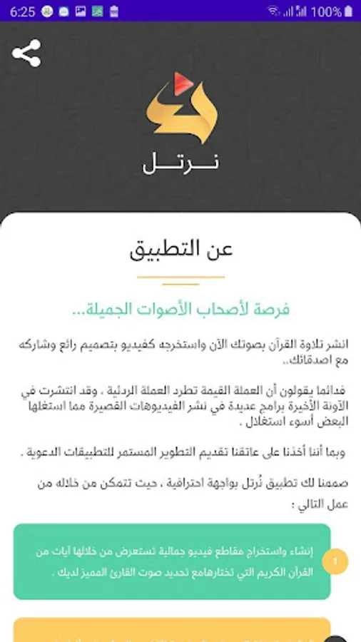 1- Create distinct videos through which to display verses that you choose from the Holy Qur’an with the ability to determine the voice of your favorite reader or record it with your voice