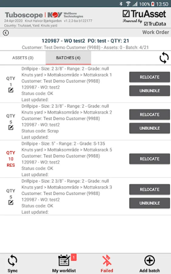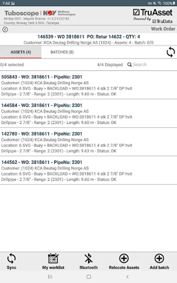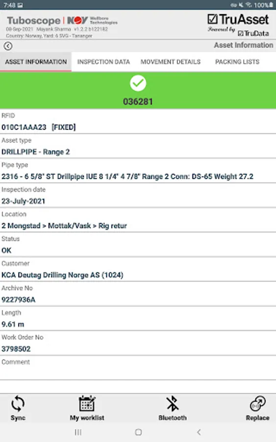 TruAsset is powered by TruData. Major Functionality of the app to provide Inspection Services for Tubular Oil Field Products.