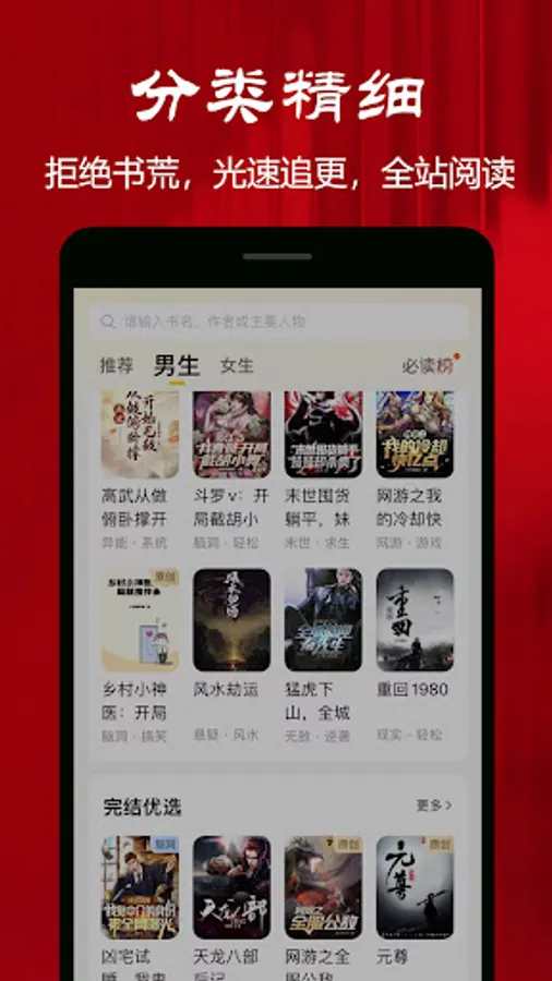 The content covers urban, martial arts, comprehension, supernatural, science fiction, romance, time travel, overhead, fantasy, youth, cultivating immortals, suspense, fandom, classics, and various genres. All the novels you want to read are here!
