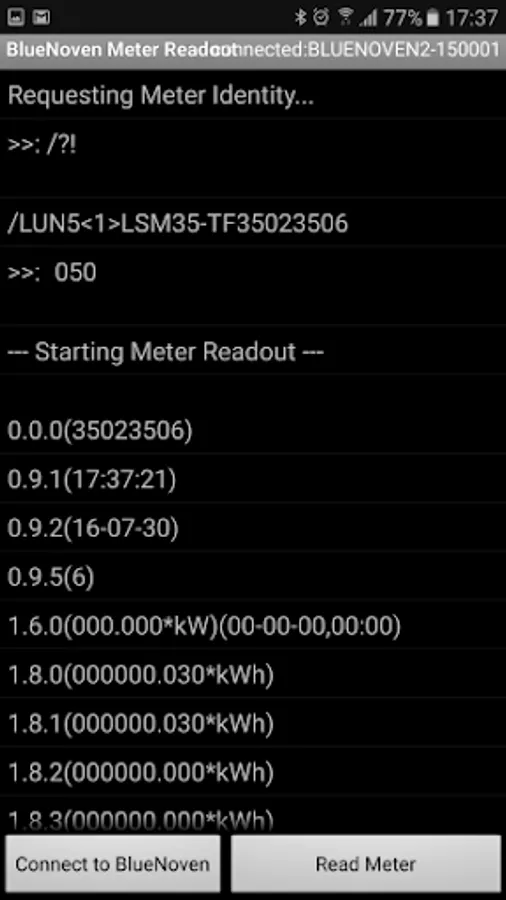 Simple IEC 62056-21 Meter Readout application using Bluetooth optical probe BLUENOVEN v1-v2