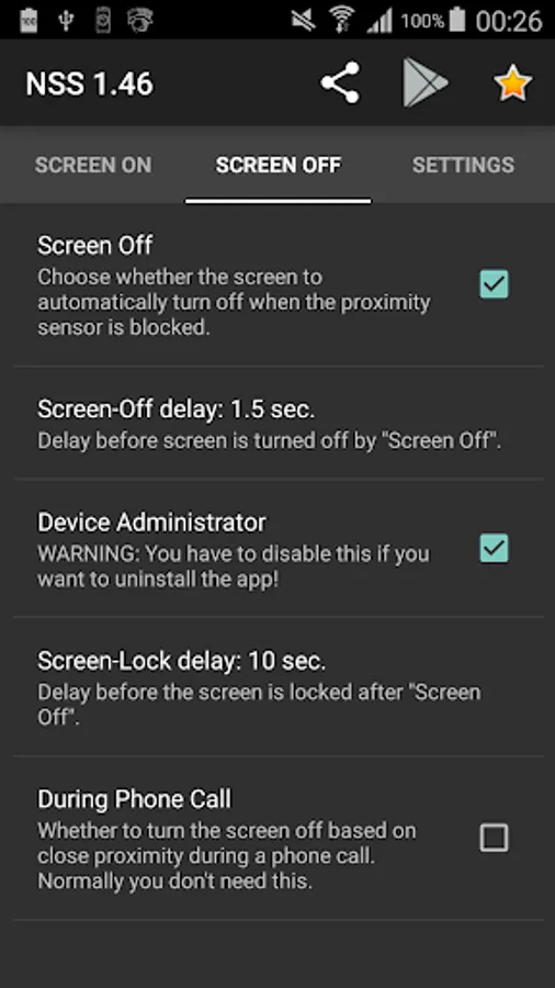 ✔ Automatically turn the screen off when you close the flip cover, put the device in pocket/bag, etc. (as long as the sensor remains blocked) and optionally lock the device after set amount of time (to make the screen stay off, even if the sensor gets unblocked);