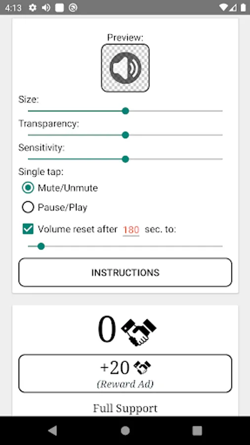 * Instant mute - tap the Volume Dot to instantly mute the music;