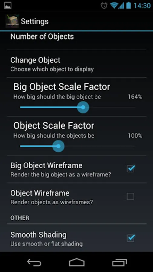 It has quite a few features, such as changing colors, sizes, shapes, and even switch the shader model or rendering the wireframe instead of the solid object.