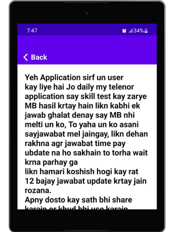 the app is design for those who want to get My Telenor skill test answers on daily bases.