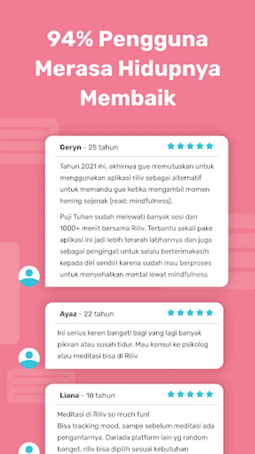 Sambut Riliv sebagai one stop service aplikasi kesehatan mental pertama di Indonesia! Tidak hanya mengatasi masalah pribadi dengan konseling, kini Riliv menyediakan layanan meditasi Hening yang senantiasa membantu menjaga kebahagiaan dan produktivitasmu. Tertarik mempelajari kesehatan mental dengan mudah? Riliv Story menyediakan artikel terkini yang diupdate setiap harinya. Sehat mental jadi lebih mudah bersama Riliv.