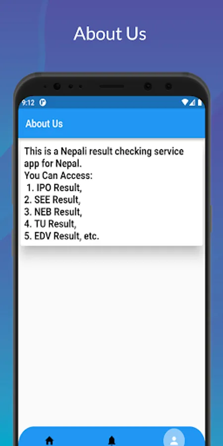 and other results. You can view Result for IPO,TU,SEE,NEB,etc. with marksheet. You can view your different result at one App.