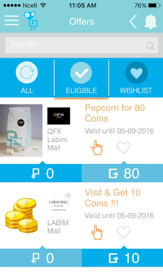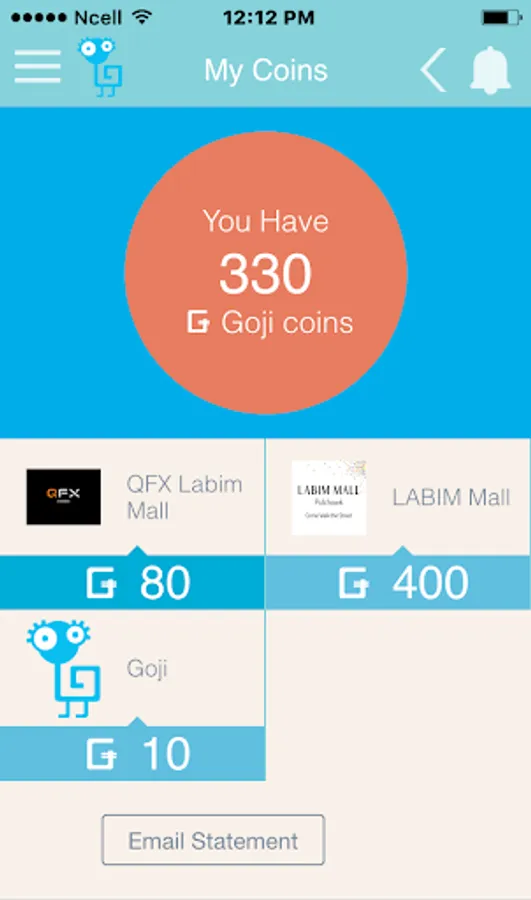 Goji also allows members to earn Goji Coins via their Offers. These Goji Coins are the universal currency of Goji, (1 Goji Coin=Nrs.1) and can be used to redeem offers from any participating store. Members can earn Goji Coins by redeeming offers and scanning their voucher QR code.