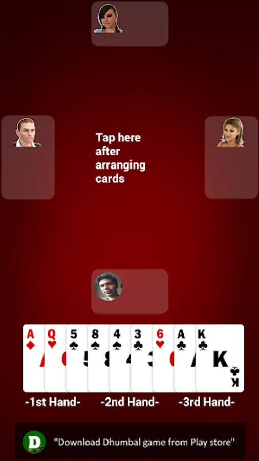 This is a popular card game in Nepal that needs to be played with 52 card deck. This is a game where you pit your luck and skills against the opponents. Nine cards are dealt to each player. The objective of the game is to make three sets out of the nine cards you have been dealt and win two consecutive sets.