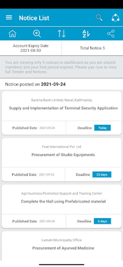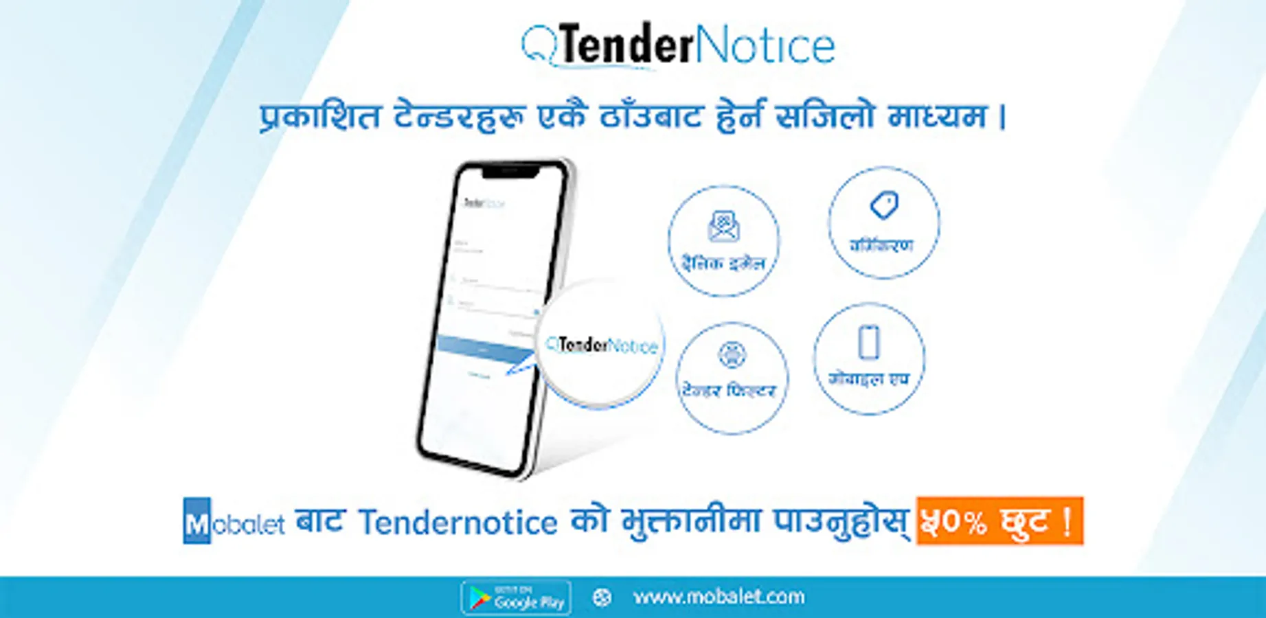 Tendernotice.com.np is an online Bid and Tender Portal Services that helps to manage all bids, tenders and related notices through website. All tender notices published in various newspapers in Nepal are collected and posted in the portal site daily basis. Users can access and download tender documents, receive through their emails right after tender publish and manage bids and tenders completely through online after registration. It simply facilitates and manages all bids and tender process in a simple manner for all users.