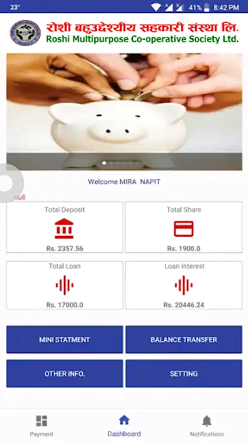 Roshi Mobile Banking application facilitates our customer to perform convenient, secured and anytime banking to manage their finances from their Android phone.