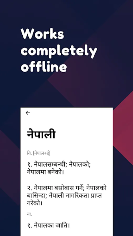 - Contains 128k+ words from the 1st Edition of the Pragya Nepali Brihat Shabdakosh