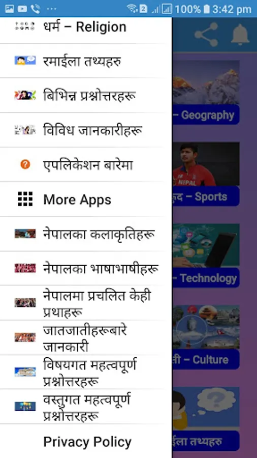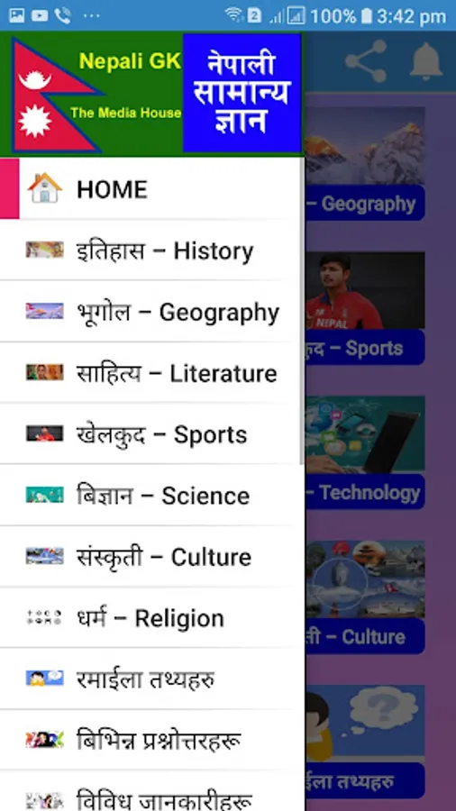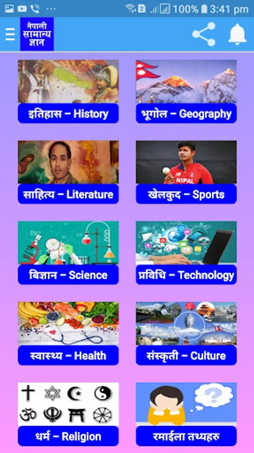 नेपाली सामान्य ज्ञान Nepali GK-General Knowledge is an educational app. It provides many questions answers about History, Geography, Literature, Sports and games, Science, Technology, Health, Nepali Culture, Religion, Interesting Facts and so many others.
