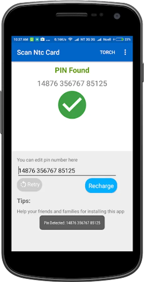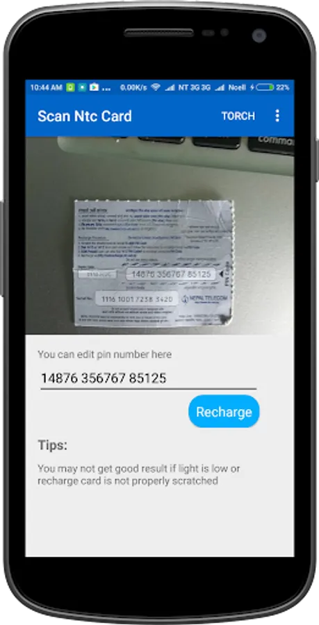 Apart from recharge card scanner, this app has a simple interface that includes the following features: