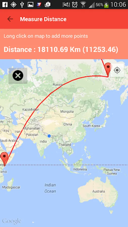 2) Measure geodesic distance of points in earth