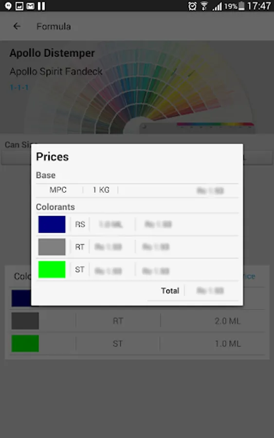 This application provides the paints dealers and suppliers an easy way to generate formula and calculate price of the color provided by Apollo Paints Pvt. Ltd. It is an alternative for desktop application like Tintwise application which are generally used to calculate the formula of the colors.