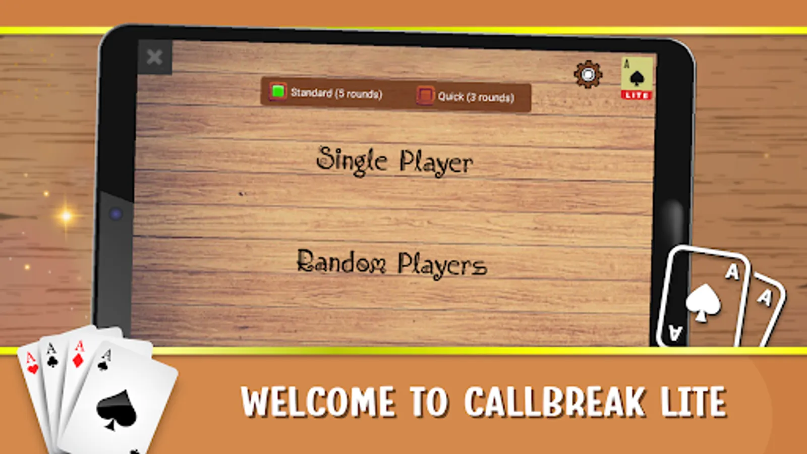 Callbreak lite brings classic card game with online multiplayer features to the Google Play Store. Callbreak lite is an easy to play card game, saves storage, loads the game much faster, and provides a better gameplay experience with its online multiplayer features. If you enjoy card games or tash game like Hearts, Rummy, Jungle Rummy, Spades, Solitaire, Call bridge and Teen Patti, then you will love a game of Callbreak lite. Compete against our well-trained AI bots with Call break offline or go multiplayer with strangers around the world in the classic card game of Callbreak lite.