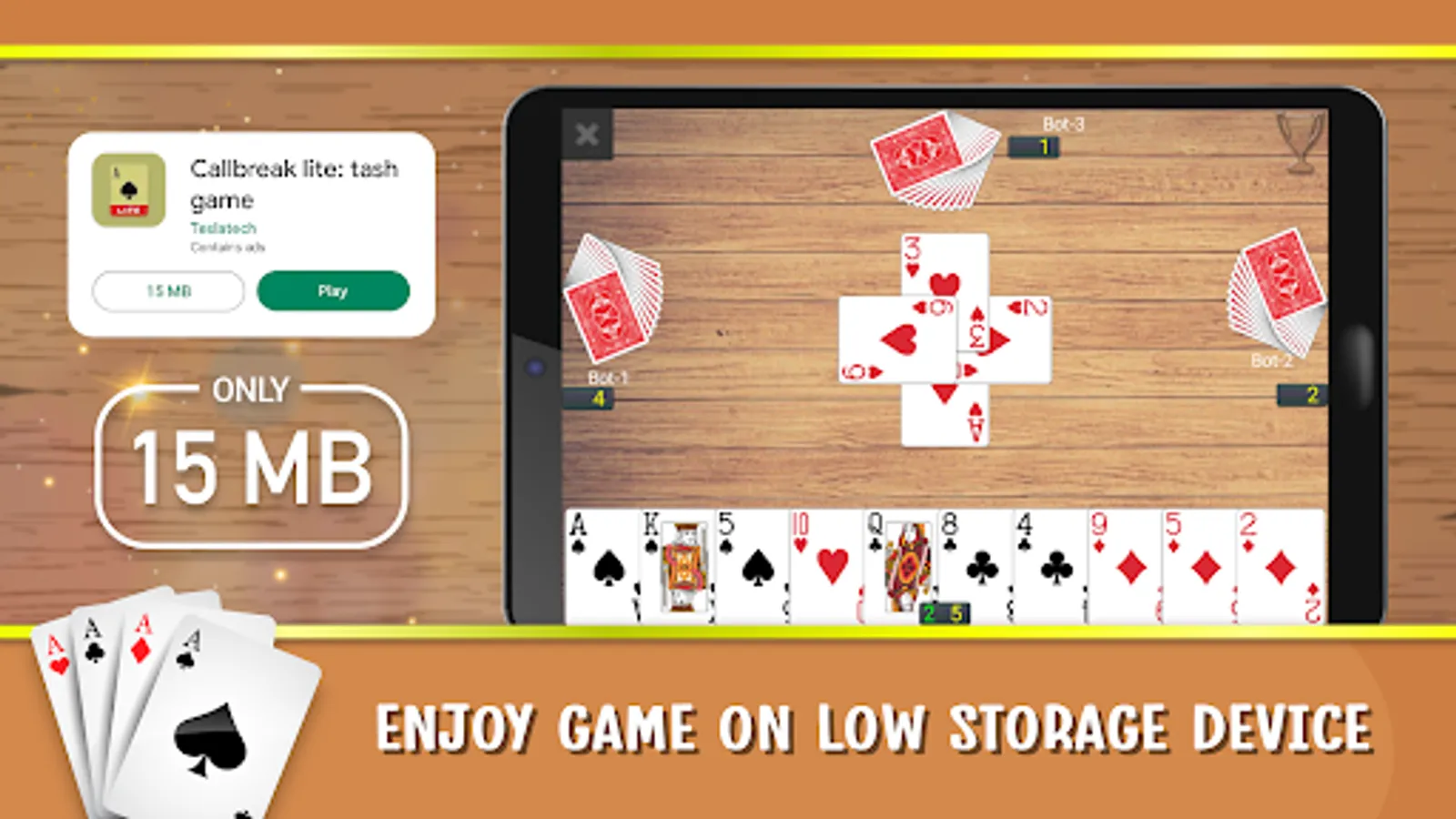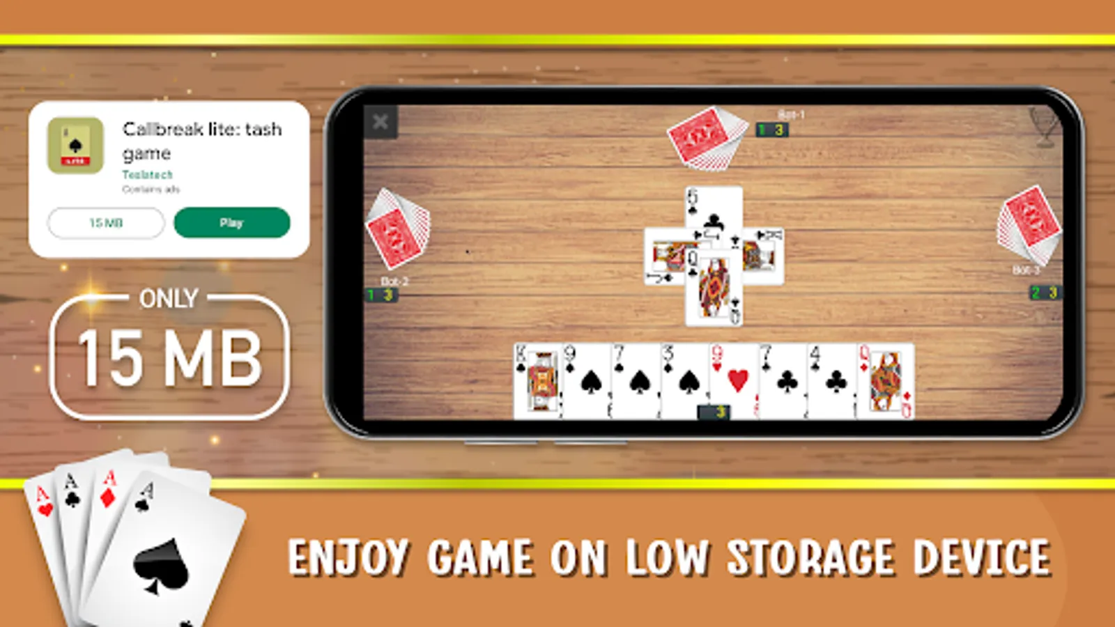 * Callbreak lite takes up almost no space, best for low-storage devices.