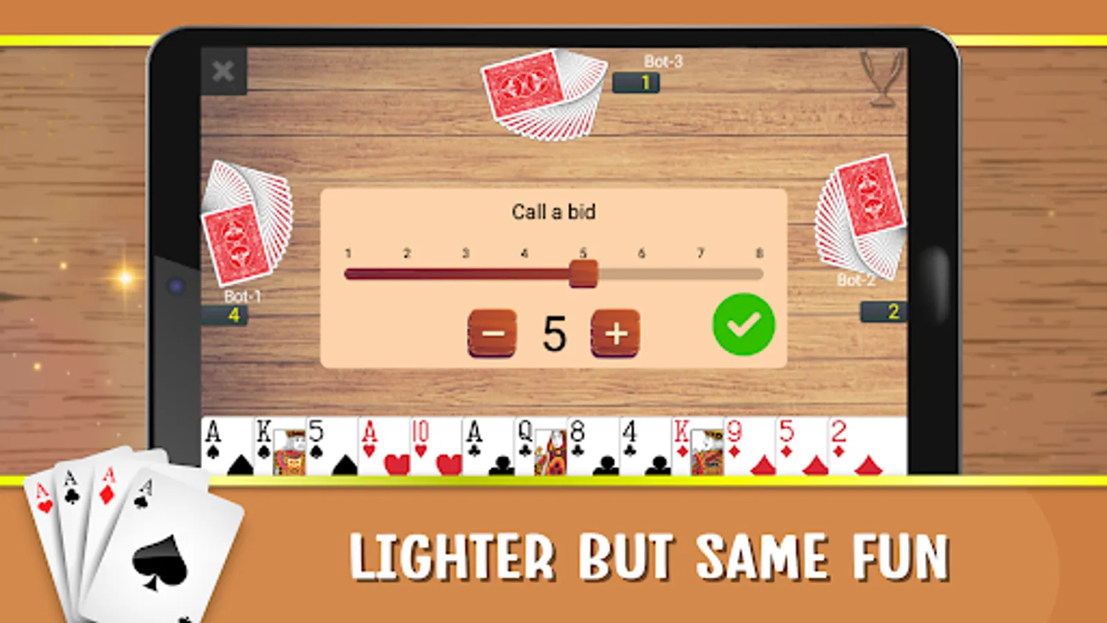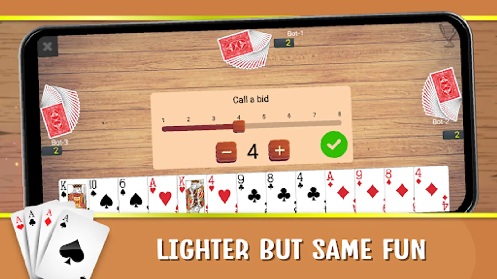Low storage phone? No problem! Download this Lite version of Callbreak for faster download and less data usage. Play the free Callbreak card game loved by millions of people worldwide in a lite version.