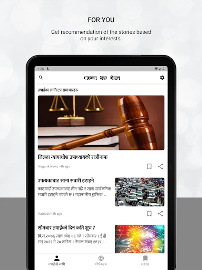 Read Latest & Breaking News in Time of Nepal - The Nepali News app, which brings continuous, customizable flow of articles organized from hundreds of publishers and magazines to help you learn more about the stories that matter to you.