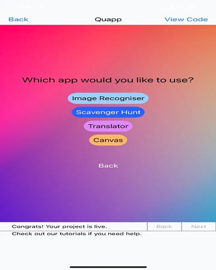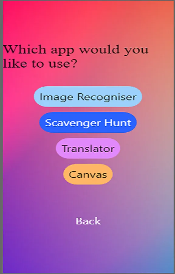 Quapp is an app for all users to experience a multi app atmosphere. It provides you a platform with 4 different apps you can use: Image Recognizer, Translator, Scavenger Hunt and Canvas.