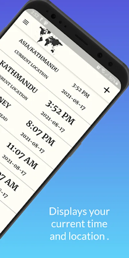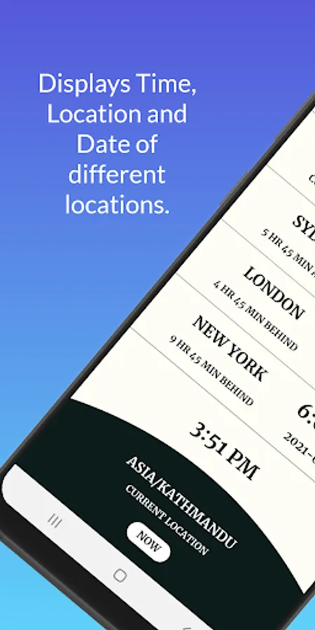 A view of current time according to the different Timezone and can also view the time difference between the current location and user preferred location.