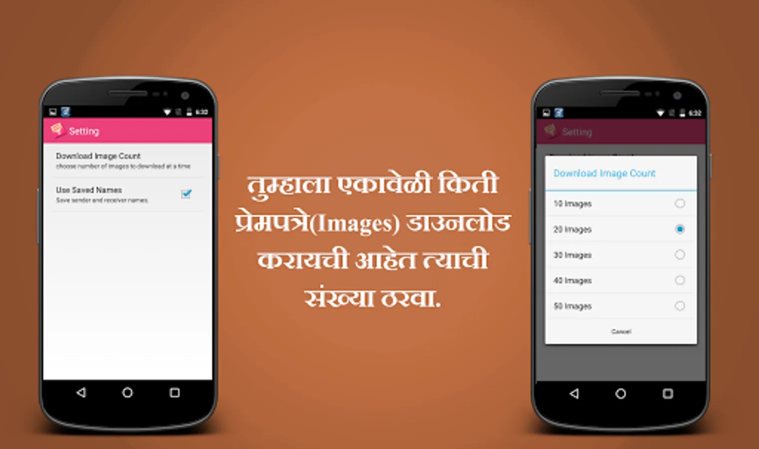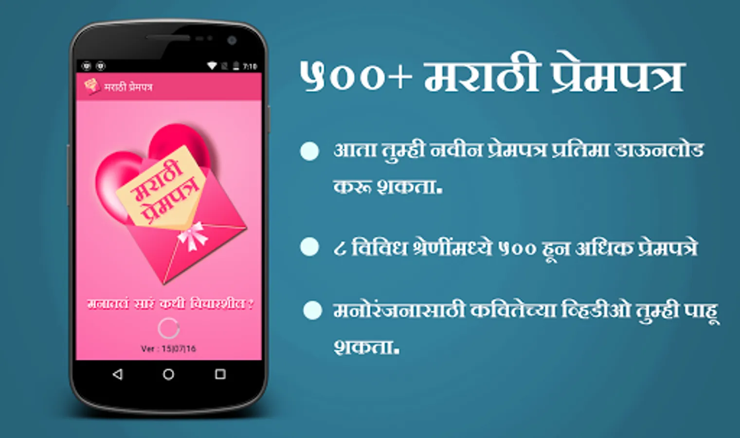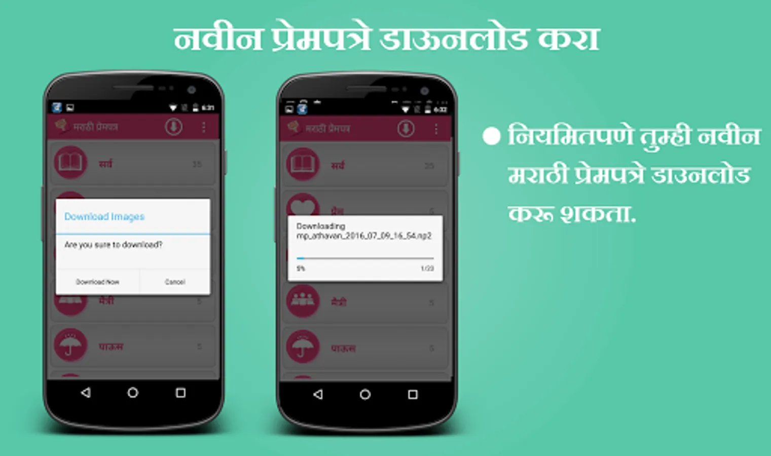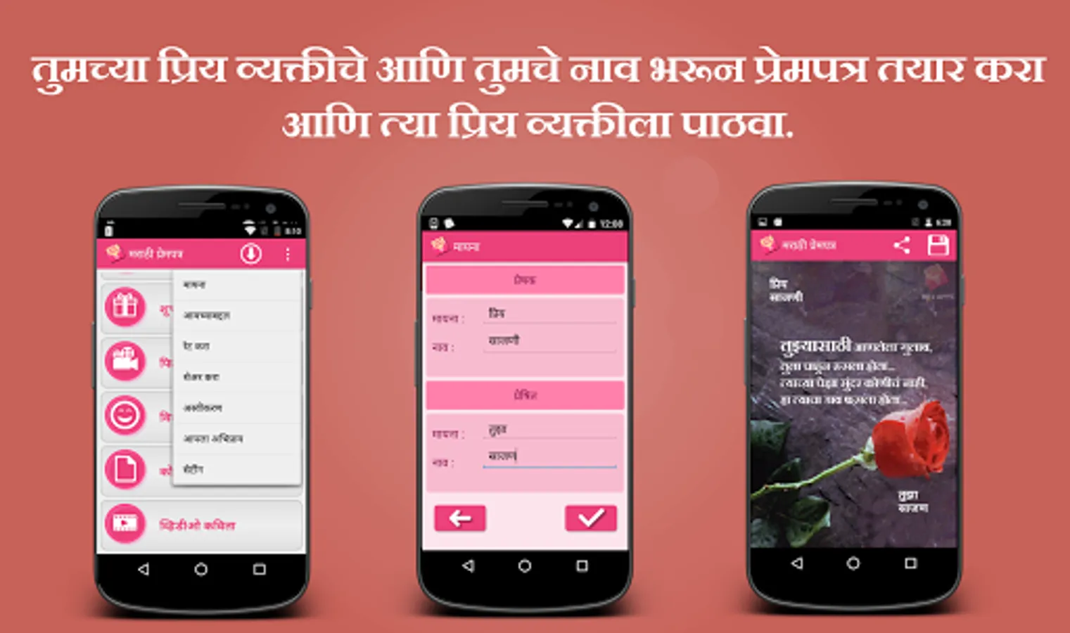 This app Contains Marathi Prempatra Images for your loved ones. Using this app you can send love letter and best wishes to your love in Marathi language. Now send love letter with your and your's loving person name printed on it.