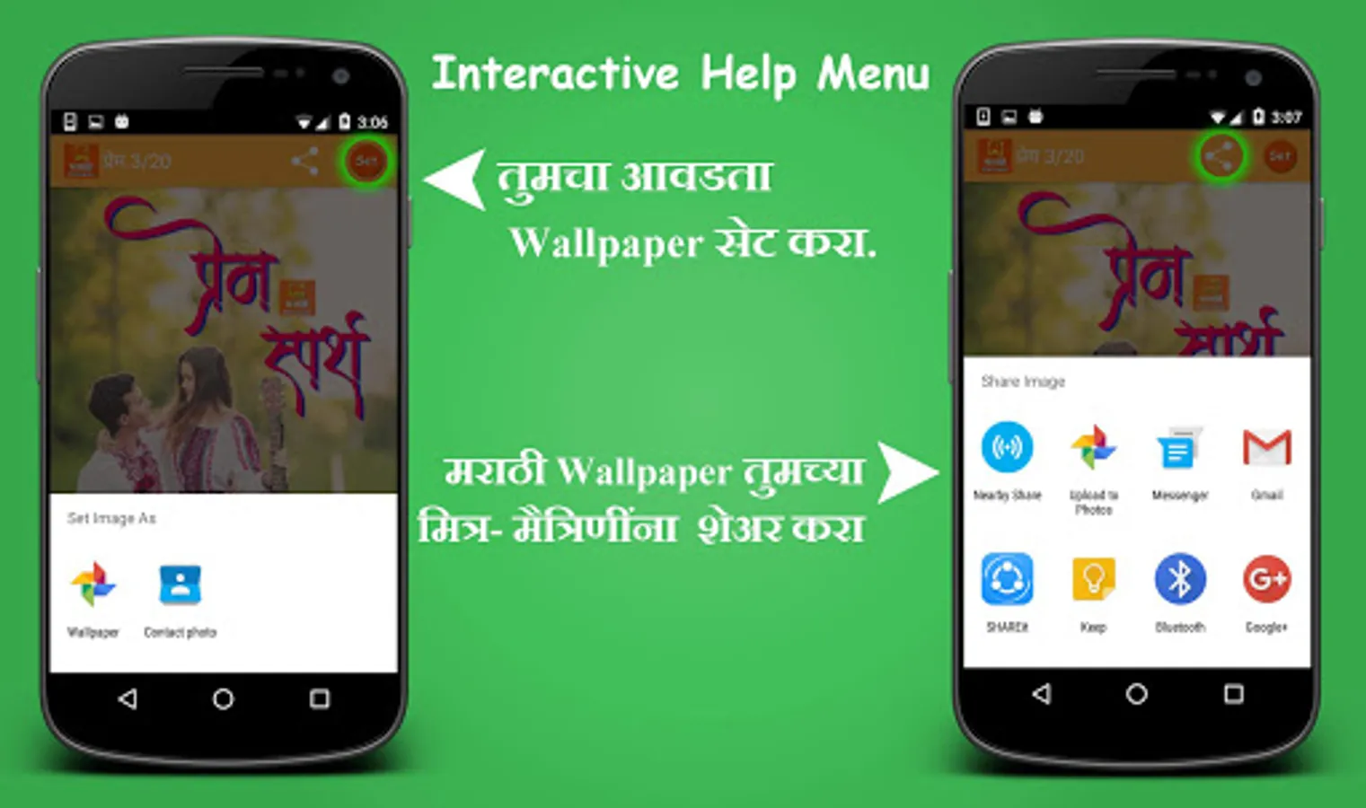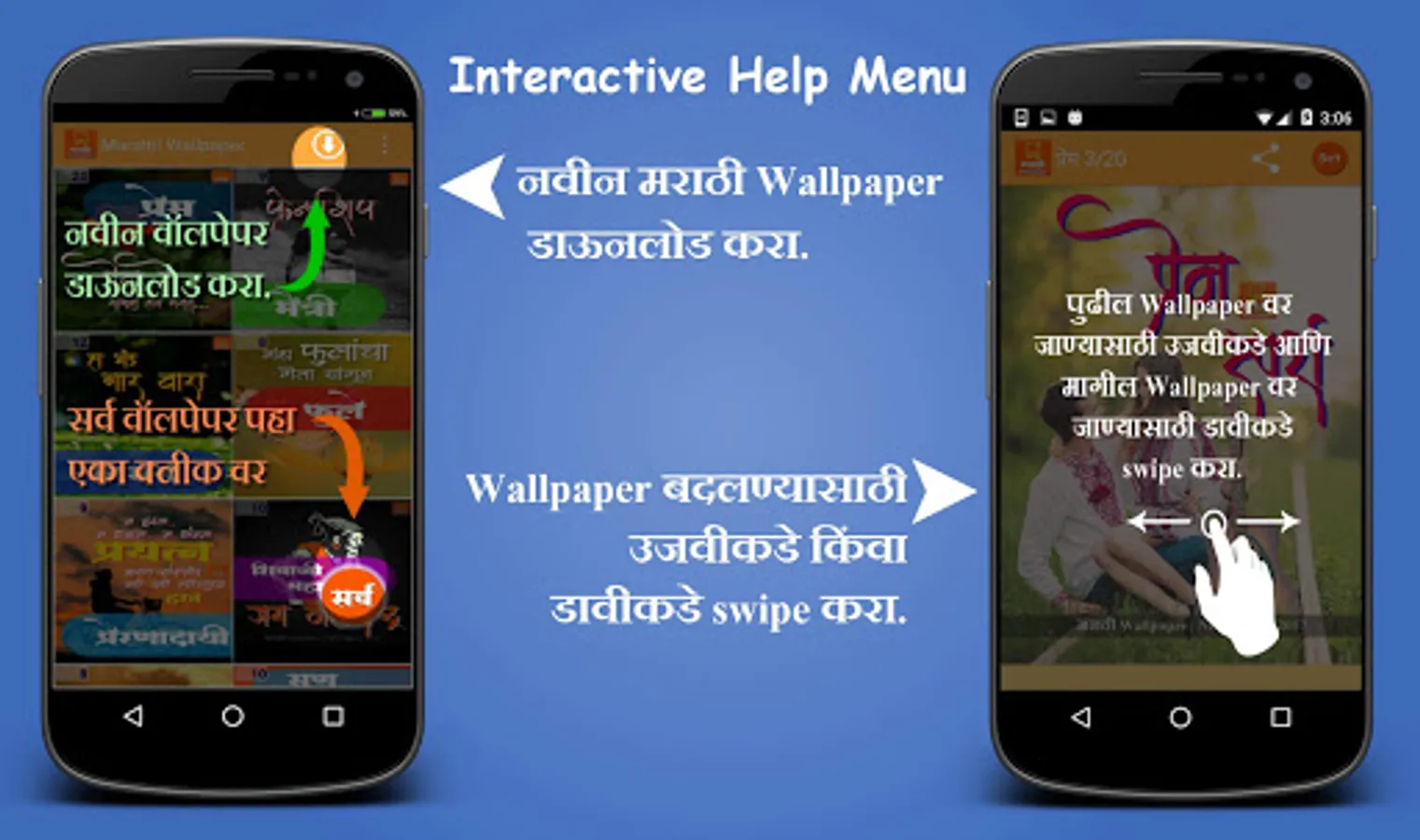 This app Contains Marathi Wallpapers for mobile. Using this app you can set any selected photo as your mobile wallpaper.