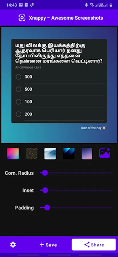 3. Image content - The screenshot or any image can be loaded from the local device or you can share the image from any app to Xnappy for further editing.