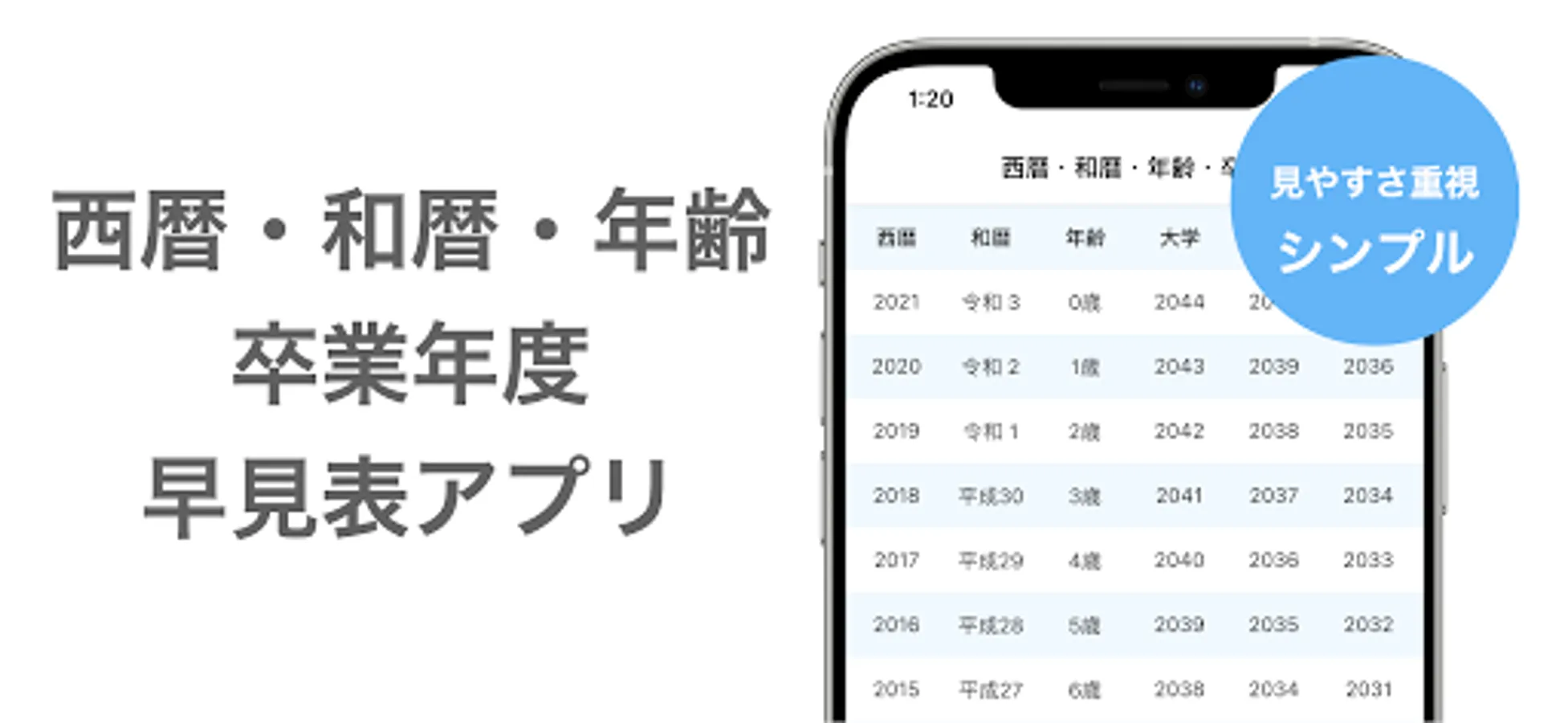It is an application that allows you to easily check the Christian era, Japanese calendar, age, and graduation year.