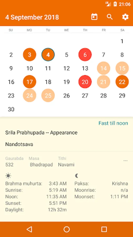 - Display Vaishnava’s celebrations and Ekadasi.