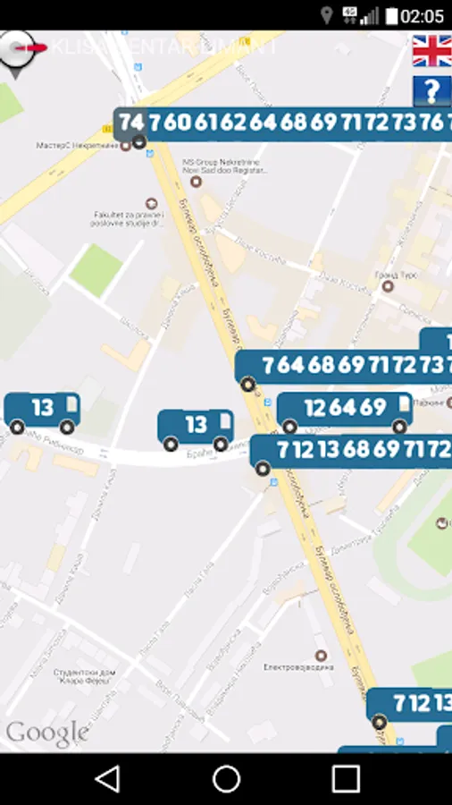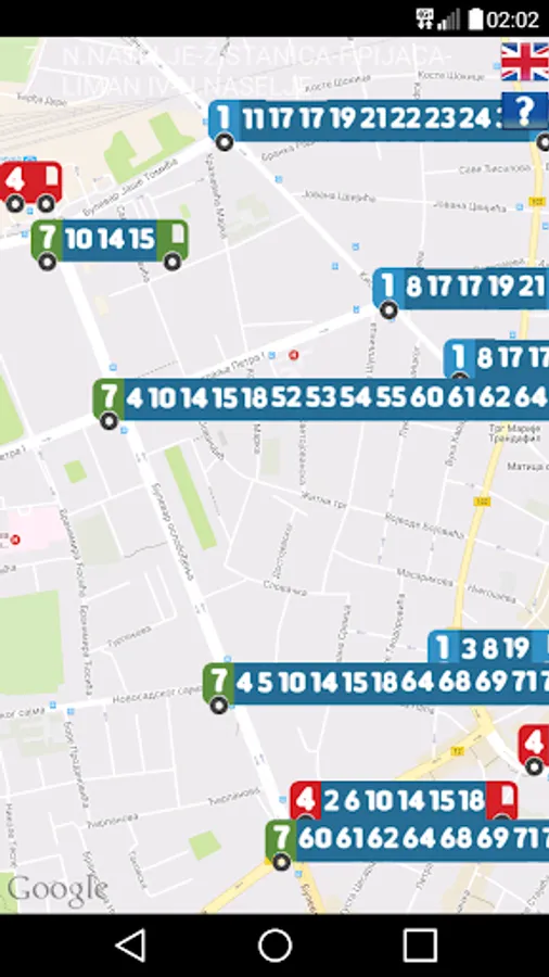 o Prikaz trase gradskih i prigradskih autobuskih linija sa svim stajalištima u poznatom i fleksibilnom okruženju Google mapa sa zumiranjem i detaljnim informacijama o ulicama grada uobičajenim za Google mape