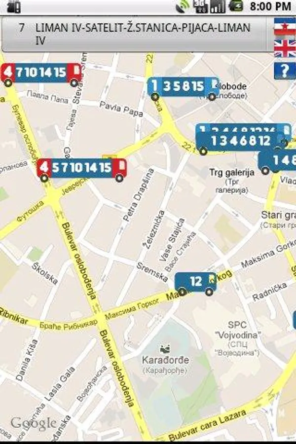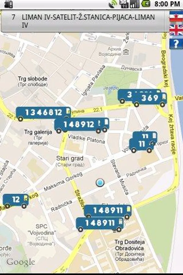 o Prikaz trase gradskih autobuskih linija sa svim stajalištima u poznatom i fleksibilnom okruženju Google mapa sa zumiranjem i detaljnim informacijama o ulicama grada uobičajenim za Google mape