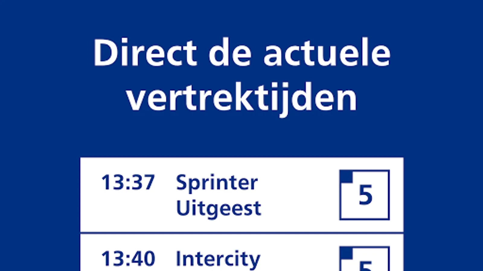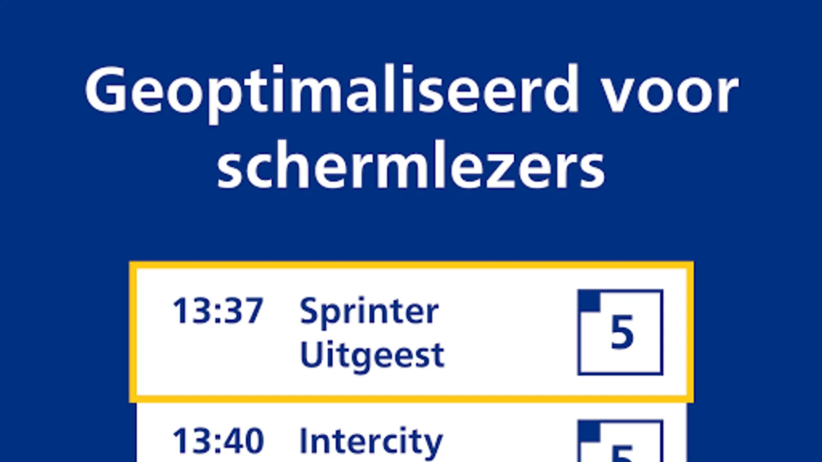 In the NS Perronwijzer you will find information about the next train that departs on the platform where you are. For example, you can do a final check to see if you are boarding the right train if you are unable or difficult to read the information on the signs above the platforms. Have you activated speech on your phone? Then the app also reads out what is written on the signs above the platforms. It's very simple: with just a few clicks you can hear the most important travel information from the platform where you are.