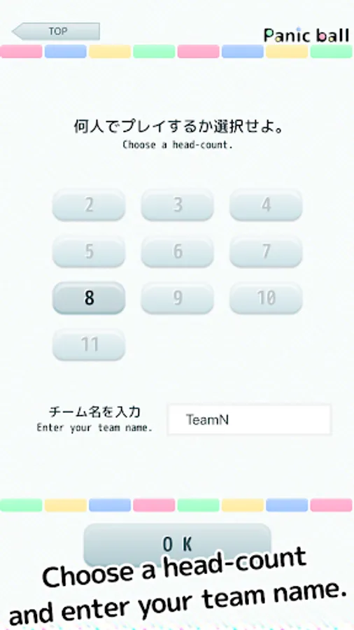 ■ Choose how many people to play (depending on the number of people selected, limit time and number of missions are determined.) and enter team name.